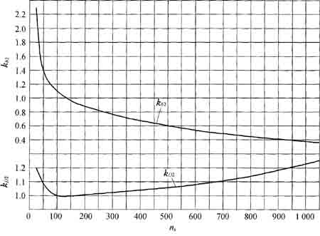 圖8-10雙吸泵kD2,kb2和比轉(zhuǎn)速的關(guān)系