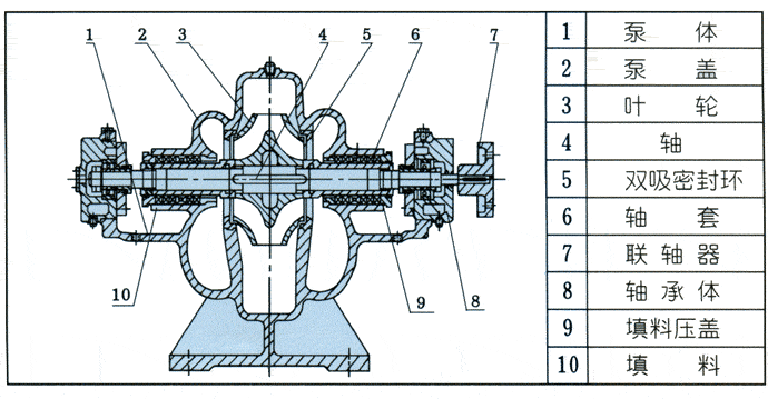 S型單級雙吸離心泵結構圖: