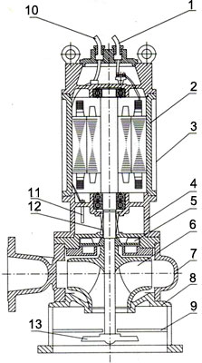 JYWQ系列自動攪勻潛水排污泵結(jié)構(gòu)圖
