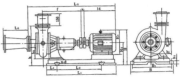 測量聯軸器外園上、下、左、右其差值不得超過0.1mm,兩聯軸器端面間咪在園周上大與小間隙差不得超過0.3mm,泵外形及安裝尺寸見圖4表5.