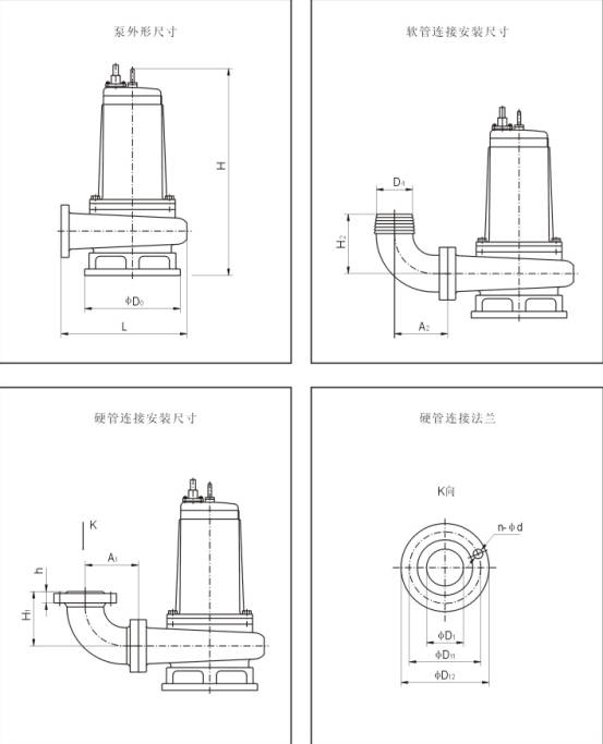 QW潛水排污泵移動(dòng)式安裝尺寸圖